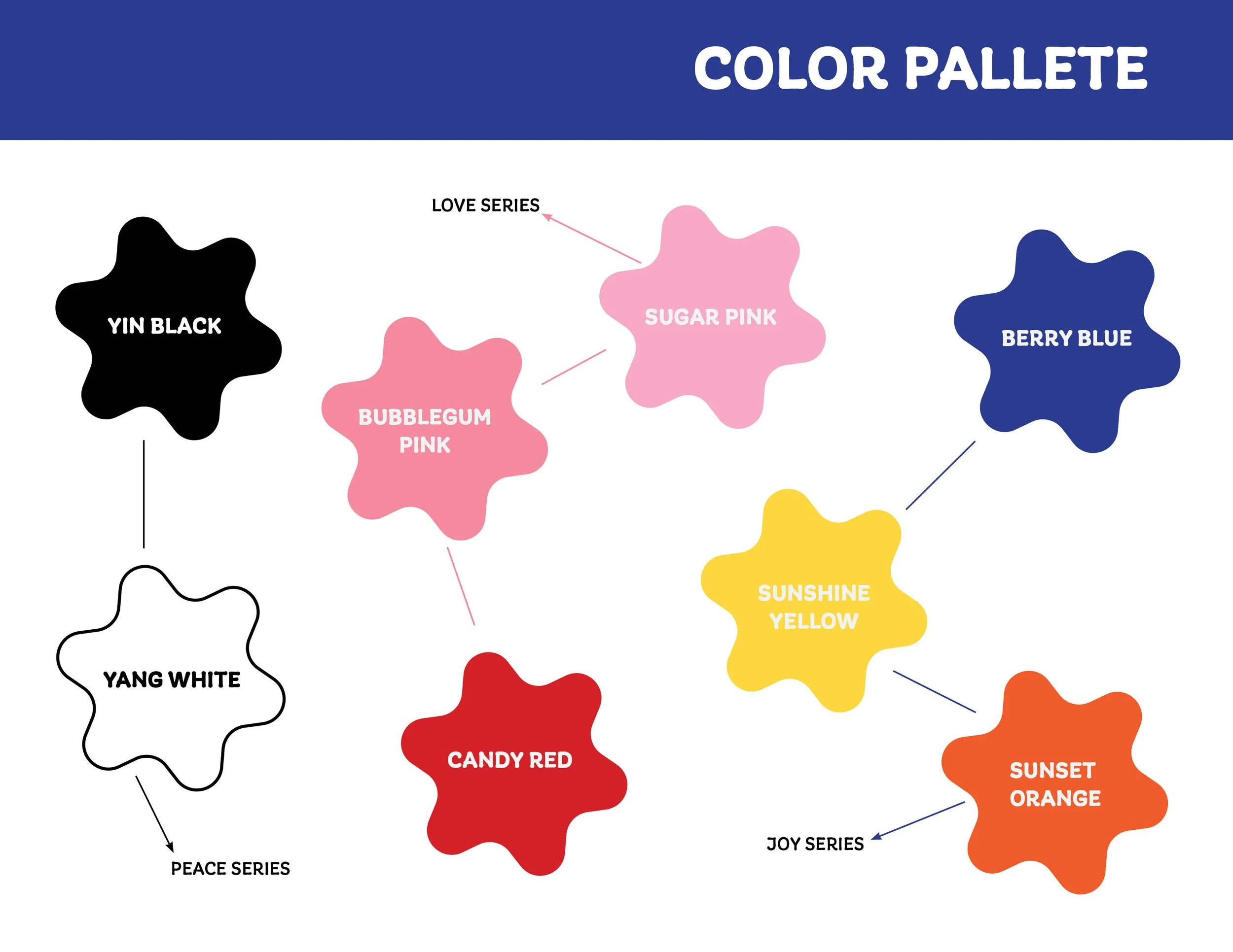 ● Joy: Embraces a monochromatic black-and-white scheme with yin-yang bead illustrations