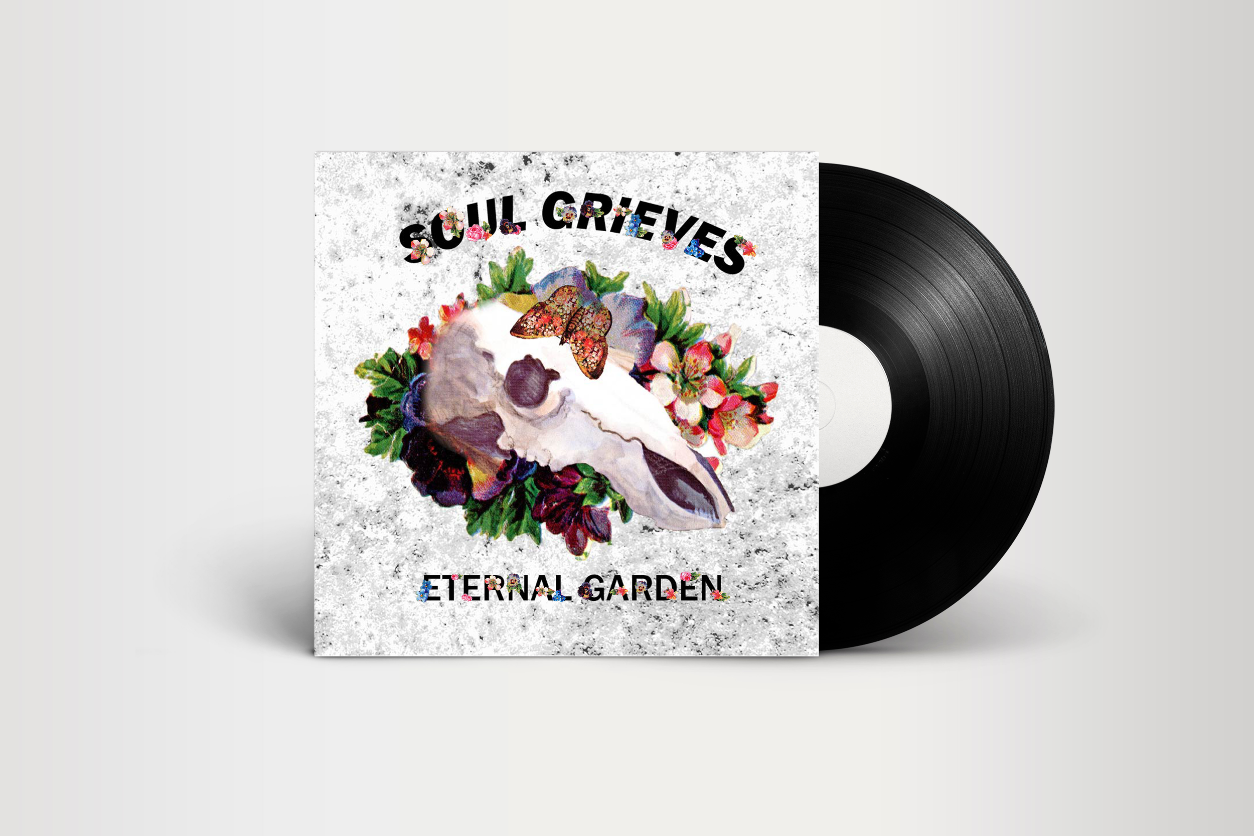 For this album remix project, I took design elements from two album covers, Souvenirs by Dan Fogelberg and The Best of Peter, Paul and Mary: 10 (Ten) Years Together, and created a brand new cover. My version was for a made-up band called Soul Grieves, with the album titled Eternal Garden. I used the flowers from the Peter, Paul and Mary cover and the animal skull from the Dan Fogelberg album as the main artwork. The color palette is mostly gray with textures that give it a gravestone-like feeling. I also added upside-down butterflies and more flowers to enhance the emotional and nostalgic vibe. For the font, I chose Adobe Garamond Pro, which both original albums used, to keep a sense of connection and consistency in the new design.